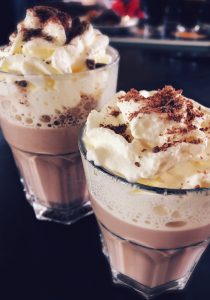 Deras varma choklad görs från grunden med 70 procentig choklad. En liten rolig detalj är att man från ”Tusen” får skriva gratis vykort med gratis porto från toppen av berget. Minstingen skrev ett kort och skickade hem till sig själv. Varför inte liksom 😉