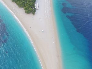 Vi tog med min drönare på resan och bestämde oss för att flyga över det gyllene hornet en av dagarna. Stranden heter Zlatni Rat. Det klaraste vatten jag upplevt. Här behövde man inte snorkla utan man kunde se fiskarna runt omkring sig när man simmade. Turkost vatten och en strand fylld med vita små stenar.