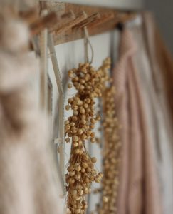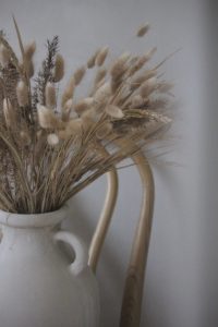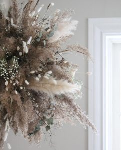 Jag har provat att odla lite olika gräs med vippor men fastnat för harsvansarna. De är så söta i bukett och kransar. Jag kombinerar gärna med torkat gräs från dikeskanten, torkade ormbunkar, torkade fröställningar och vass. Jag sår dem på friland.