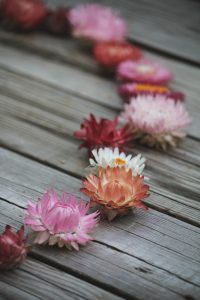 När vi säger eterneller menar vi oftast den här sortens blommor som du ser på bilderna. De kallas även pappersblommor då de slår ut torkade redan som färska.