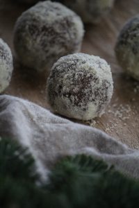 Rulla till bollar. Rulla dem i t.ex. kokosflingor om du tycker om kokos.